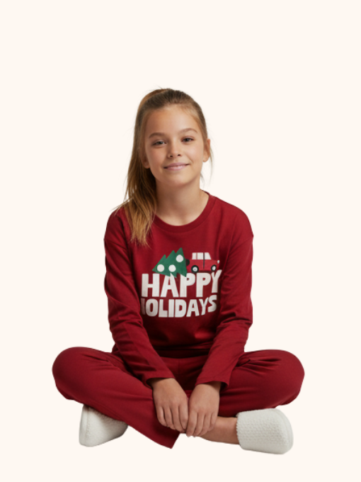 Spread the cheer with our Happy Holidays red full sleeves t-shirt! Made from soft cotton, which is perfect for boys and girls to stay cozy this winter season.
